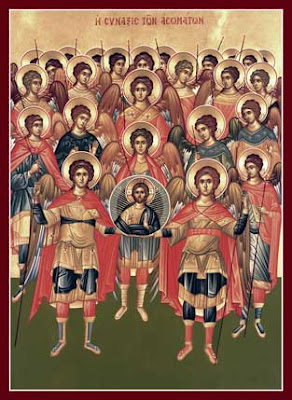 Kι ενώ οι φίλοι σου που μένουν, σήκωσαν το σύμβολο του σώματός σου στους ώμους τους, εσύ είχες φύγει, γοργόφτερο το βήμα, για να συναντήσεις τη Σύναξη των Αρχαγγέλων εκεί ψηλά, μερικά πρόσωπα γνωστά, πάνω και πέρα από τη μετέωρη συννεφιά της τελευταίας ημέρας του Φεβρουαρίου, που δεν είναι τόσο Άγιος όσο τον τραγουδήσαμε...